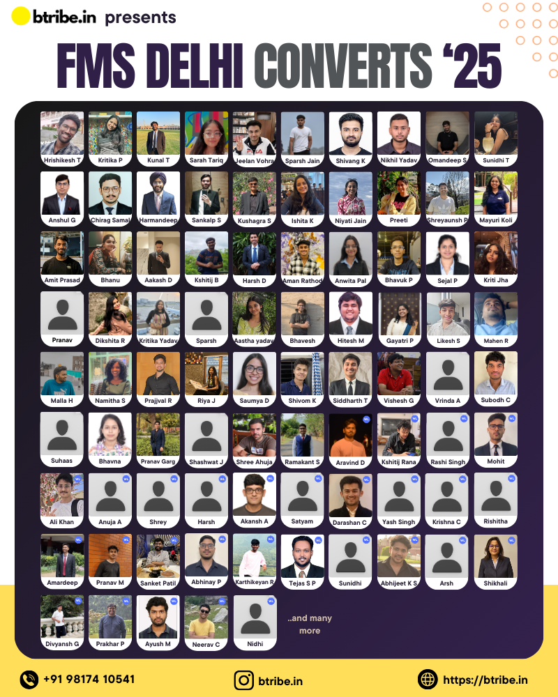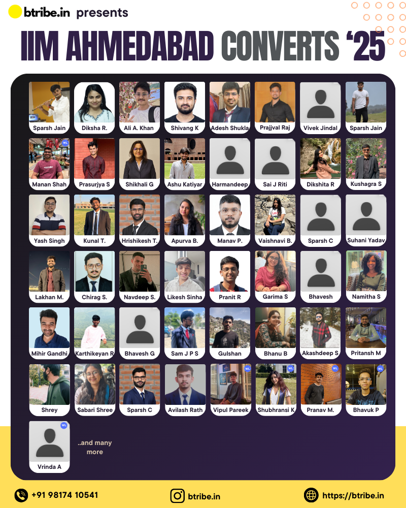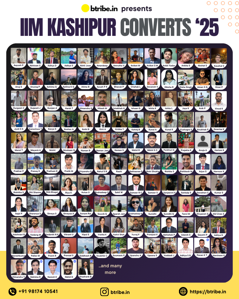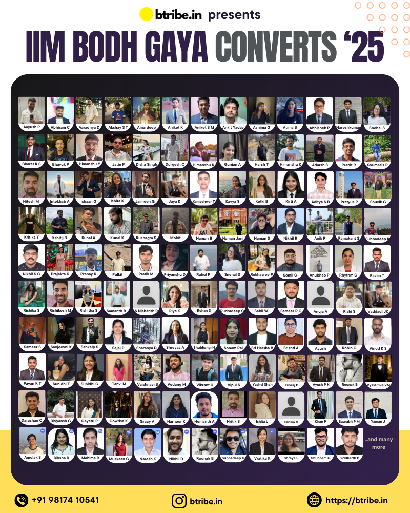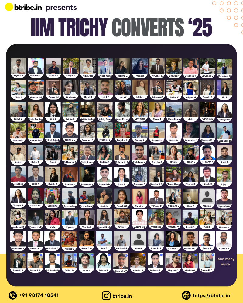 It was a much-needed boost in my prep. I was laid back a bit after CAT results, but the major decision was to enroll in BTRIBE. It is a whole ecosystem that pushes you to be the best. I got out of my happy happy zone and went back to grind. It was BTRIBE that made me forcefully form the HRQs and a ton of questions.I was unable to utilize the program to the core, but it just needs a spark to start an IC engine. The same was for me. I got back on track cause of this fantastic system that this organization has built. It streamlined my preparation and gave pinpoint directions regarding GKs, personal questions, and whatnot.It converted my turbulent flow to a streamline one (Mechanical jargon - revised a couple of months back😂). To end the note-Thanks to the admins and all the mentors for their effort and motivation.